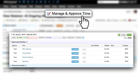 Accelo allowed them track all of the work linked to their retainer clients. The hours logged, emails sent, projects finished and meetings scheduled are all brought into one basket at the end of the billing period. Anything that is billable becomes charged at a fixed hourly rate and all of the staff at Bang Online Marketing complete their monthly billing with ease.