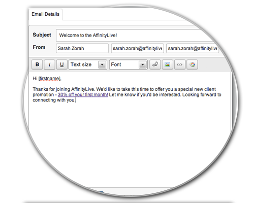 While there are hundreds of email newsletter products on the market, we've found the most effective marketing emails are short, simple and look just like you'd written them directly to the recipient as a one off. We built the Direct Email feature in the new Campaigns module for just this purpose - now you can send emails to literally thousands of your clients yet each one will be personalized, individually delivered and most importantly, look just like an email you'd have sent them yourself!
