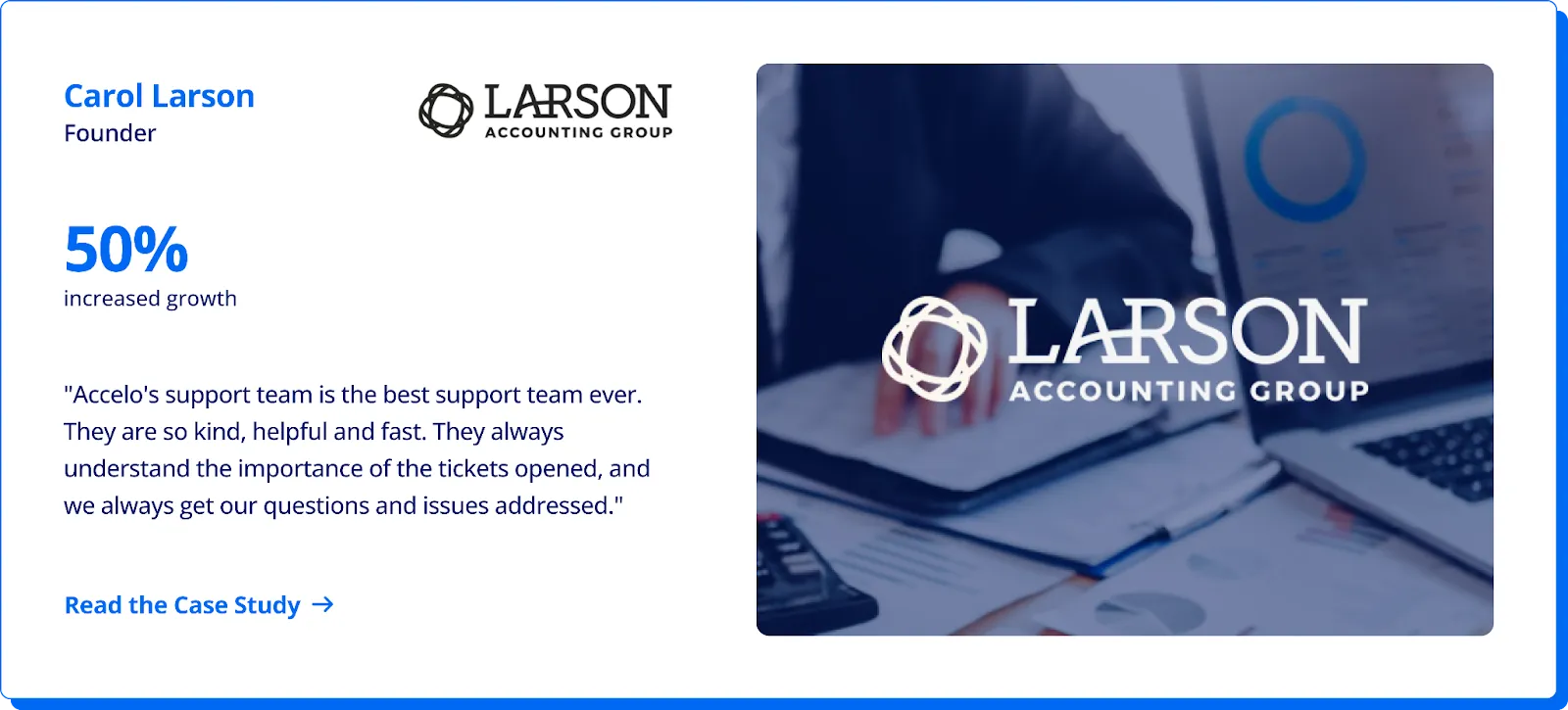 Larson Accounting Group has grown by 50% in the 3 years since adopting Accelo as its project management software. Read more about their story here.